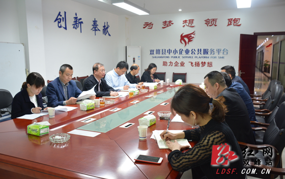 2018年3月28日,湖南省经信委中小企业服务指导处副处长谢剑锋、市经信委副主任罗一鸥一行到双峰县中小企业公共服务平台开展调研工作。