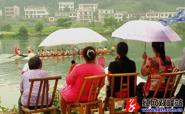在双峰境内,端午赛龙舟已成为一项古老的民间习俗,传承千百年而经久不衰,从湄水、测水到涟水,沿河两岸,曾有“黄龙”、“金龙”、“白龙”、“银龙”、“青龙”、“乌龙”等大小龙舟数十条。然而,上世纪八十年代在永丰湄水河段因两岸龙舟胜负之争而引发械斗,发展到焚船、伤人,而被禁止。