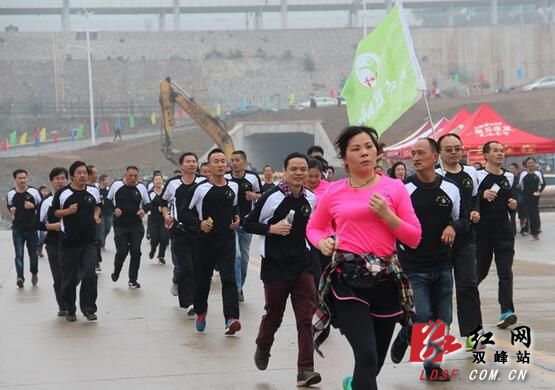 9时30分,镇党委书记胡红辉宣布:洪山殿镇“禁赌限牌、健康生活”环双峰北站长跑健身活动开跑。400多名跑步队员万箭齐发,争先恐后,在4公里跑道上尽情释放着不一样的激情。