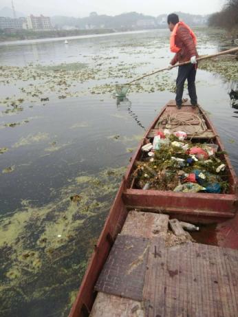 为彻底改变河道沿线“脏、乱、差”现象,为居民创造一个良好的生活环境。杏子铺镇快速行动,开展为期一周的河道环境集中整治专项行动,组织人员打捞河道、河边岸边垃圾和水面漂浮垃圾,出动清运车等机械全面开展河道垃圾清理。经过全面清理综合整治,辖区内河道环境得到明显提升,河道的面貌焕然一新,还了河流一片洁净。图为3月27日,工作人员在打捞河道垃圾。