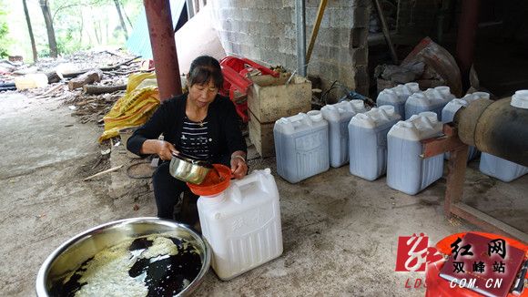 “这是我41亩菜籽榨出来的1700斤菜油和850斤菜枯,全部由深圳来的刘老板包销了,共卖了2万多元呢!”6月9日,双峰县锁石镇大溢塘村村民李闹其,指着榨油坊里刚装上皮卡车34桶清亮的菜油和编织袋分装的菜枯,开心极了:“想不到我一个贫困户脱贫了,托党和政府的福啊!”。